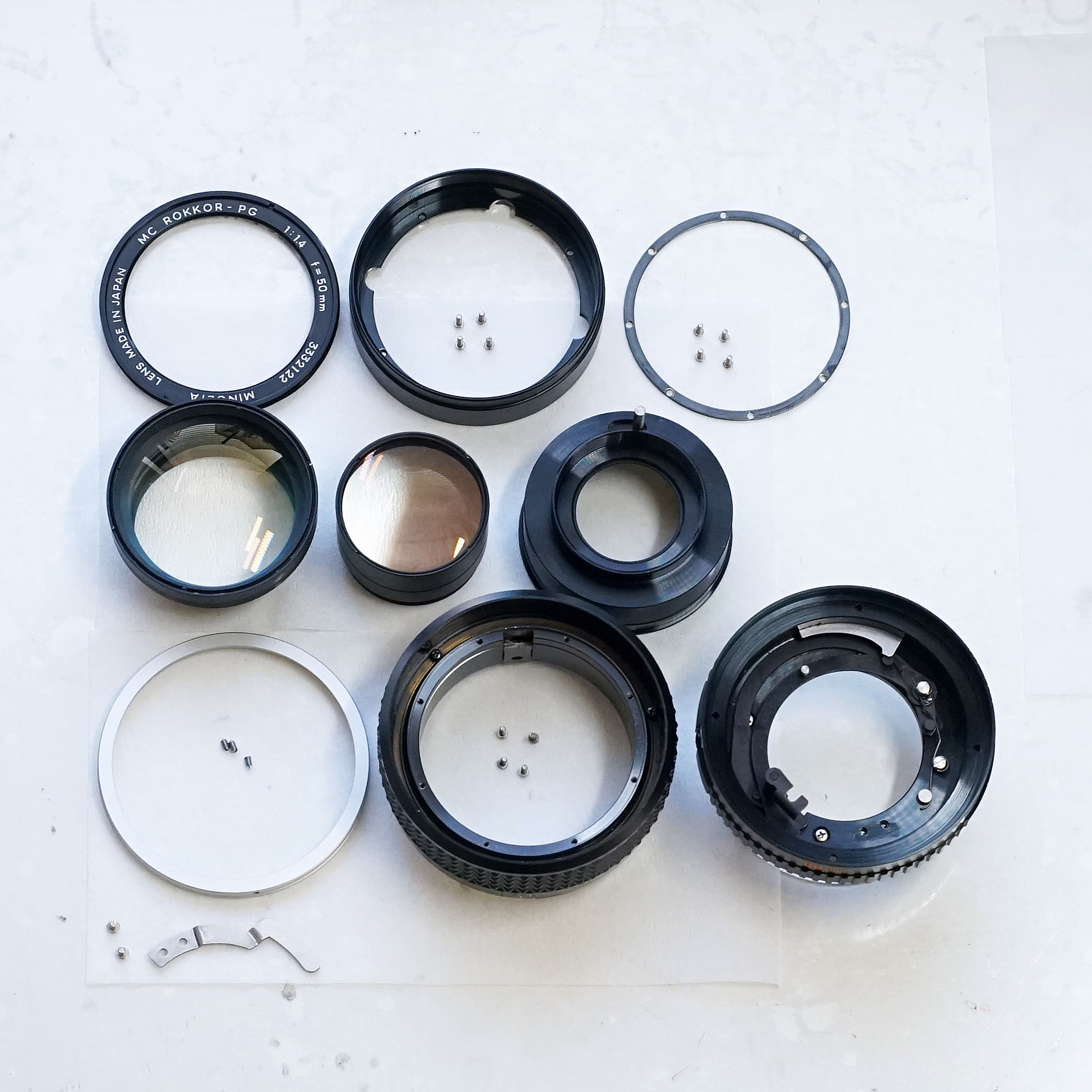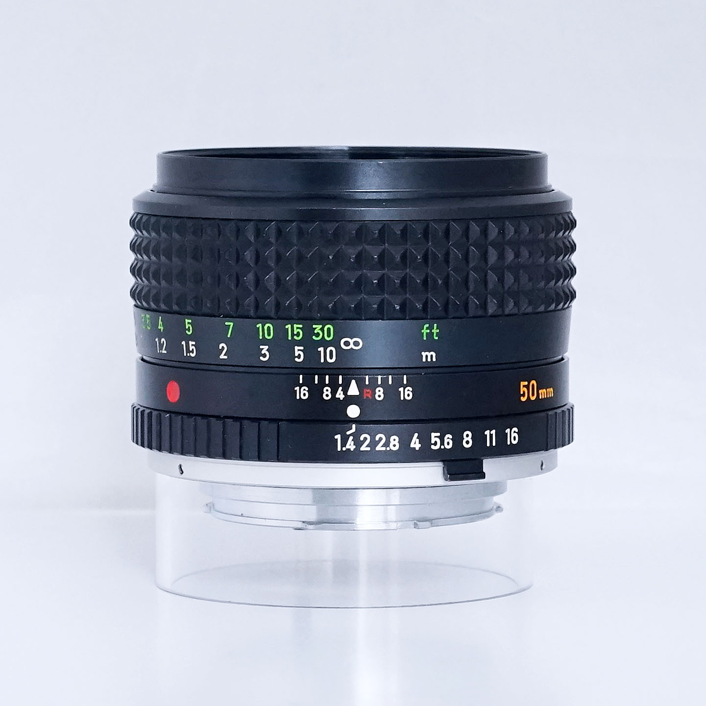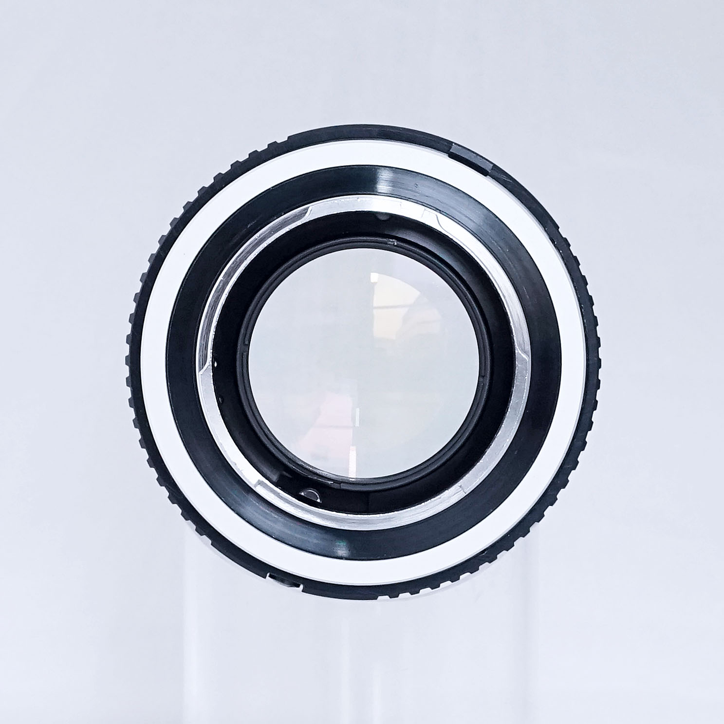 [特記]レンズは簡単な分解・クリーニング済です。わずかに小くもり、小きずがみられますが、総体的にきれいです。9枚目の写真(ノーレタッチ)は、本レンズを絞り開放にして逆光で試写したものです。描写、ボケ良好の実用品です。フォーカスリングはなめらか、絞りリング、絞り羽根の動きも良好です。外観は写真でご確認ください。赤玉マークが欠落しています。